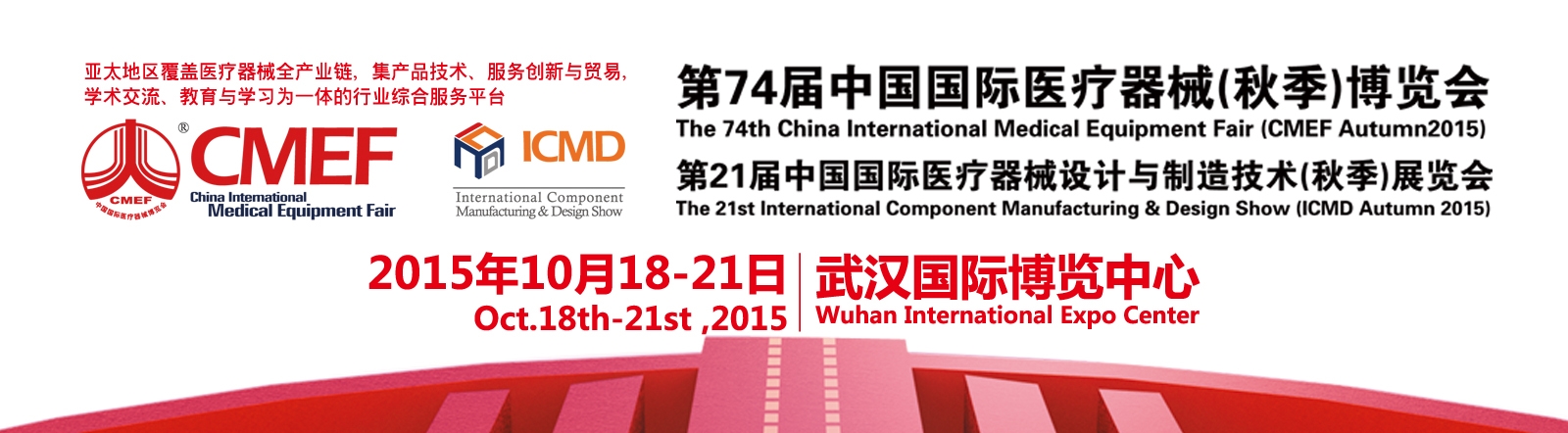醫(yī)療器械界萬眾矚目的第74屆中國國際醫(yī)療器械博覽會-2015CMEF武漢秋季醫(yī)療器械展會,將于2015年10月18-21日在武漢國際博覽中心舉辦。屆時有來自20多個國家的2600余家醫(yī)療器械生產(chǎn)企業(yè)和超過100多個國家和地區(qū)的150000人次的政府機構(gòu)采購、醫(yī)院買家和經(jīng)銷商匯聚CMEF交易、交流匯聚于此,場面盛大壯觀,值得期待。