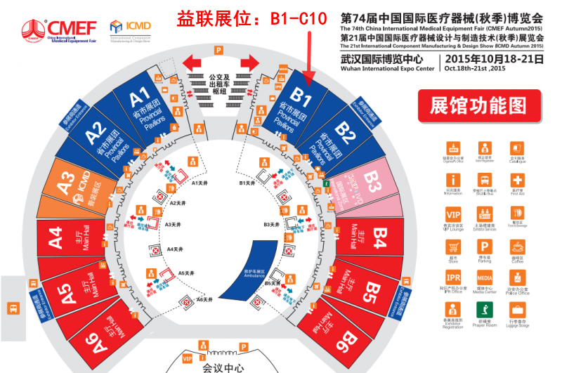第74屆CMEF秋季益聯(lián)展位 B1-C10,2015.10.18-21 武漢國際博覽中心(武漢市漢陽區(qū)鸚鵡大道619號)上海益聯(lián)醫(yī)學歡迎新老客戶蒞臨指導、洽談合作。
