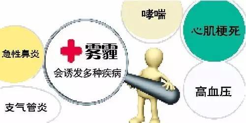 、誘發(fā)呼吸道疾病。霧霾的組成十分復(fù)雜,大小有數(shù)百種顆粒物,這些顆粒物通過人體呼吸,進入呼吸道,會引發(fā)氣管炎、哮喘等呼吸道疾病。
