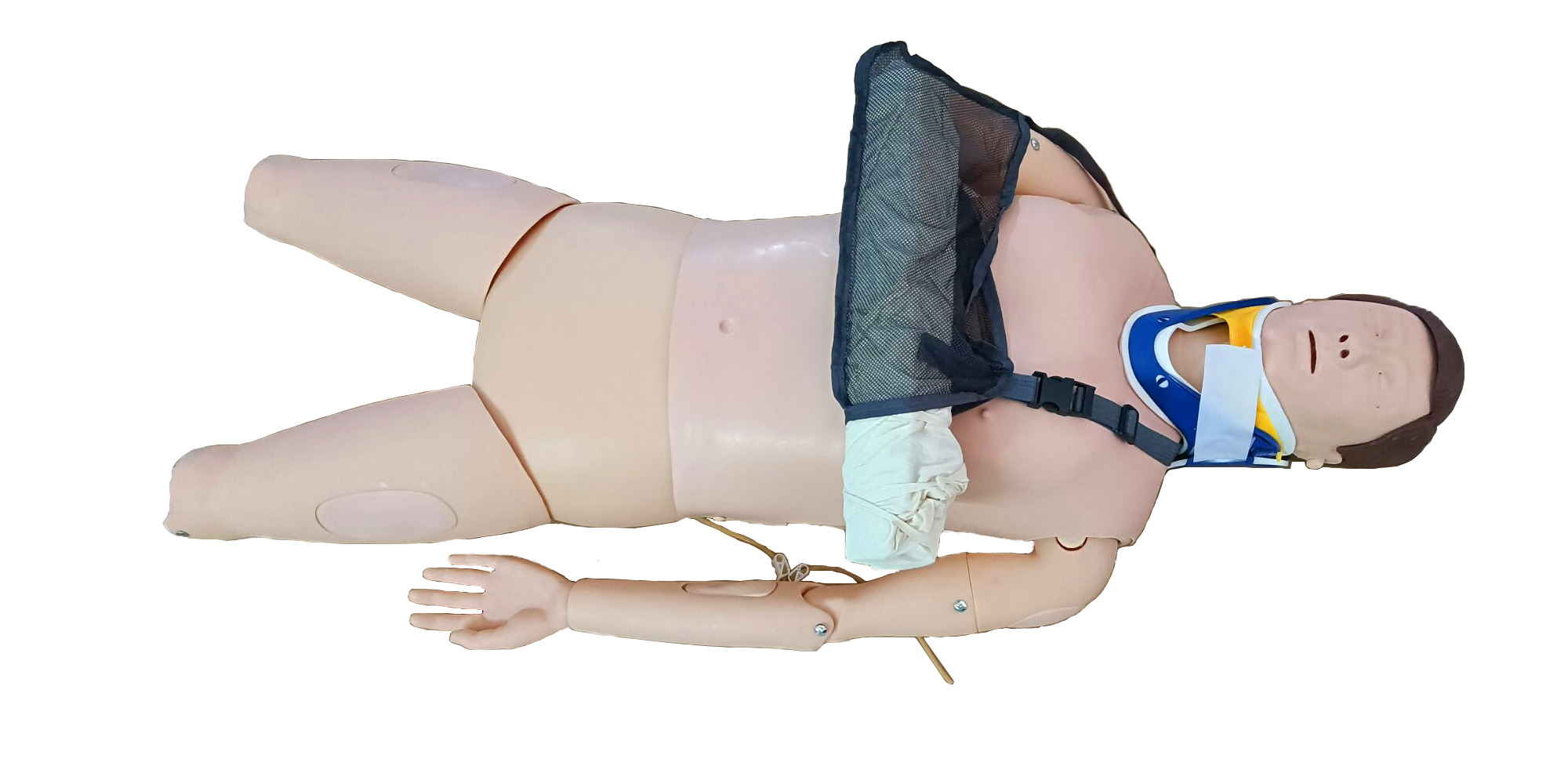 四肢骨折急救外固定訓(xùn)練仿真標準化病人具有上肢前臂及下肢小腿骨折創(chuàng)傷。使學(xué)生了解骨折所具備的反常運動、成角畸形、活動后產(chǎn)生骨擦聲,骨折上下肢需及時用夾板固定,防止反復(fù)活動造成骨折周圍血管神經(jīng)損傷。