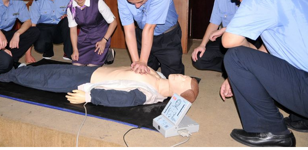 圖為:列車(chē)員操作心肺復(fù)蘇模擬人(圖片來(lái)源于網(wǎng)絡(luò))