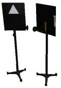 本儀器由兩個(gè)在黑背景上的白色等邊三角形構(gòu)成,每個(gè)三角形均有一個(gè)立柱支撐著,三角形面積大小和立柱的高矮均可調(diào)節(jié)。每個(gè)三角形既可用作標(biāo)準(zhǔn)刺激也可用作比較刺激。
