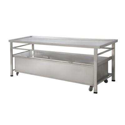 該解剖臺(tái)加裝導(dǎo)軌及可存放兩具尸體的大儲(chǔ)存箱,該箱體帶有四個(gè)靜音腳輪,不占用空間,可節(jié)省實(shí)驗(yàn)室的有效使用面積。