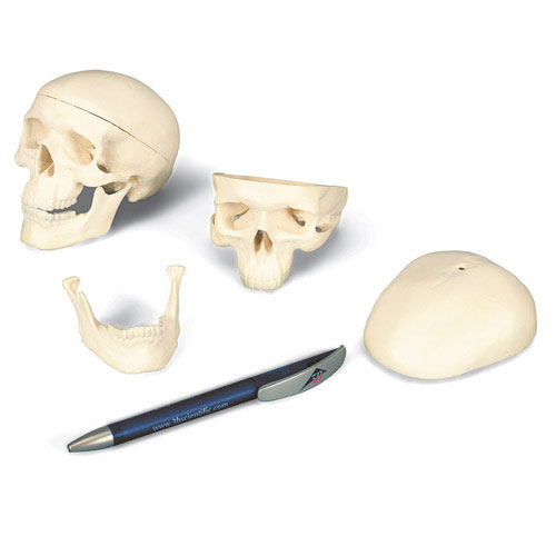 我們的微型顱骨模型,極為逼真細(xì)致地展示了解剖上頭部的各個(gè)組織。可以分拆成顱蓋骨、顱底和下頜骨三部分。