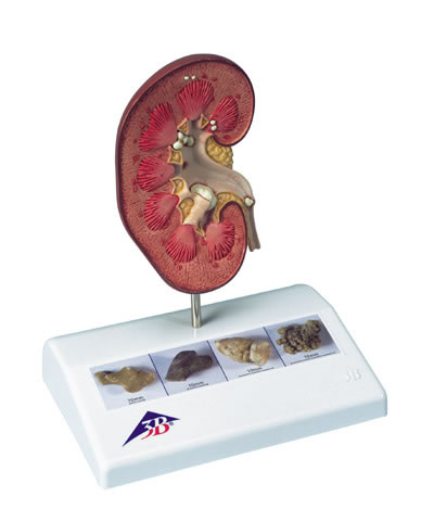借助這款模型,為病人解釋腎結(jié)石和尿結(jié)石等病癥會(huì)變得非常簡(jiǎn)單。實(shí)物大小,展示了開(kāi)放的右腎。腎盞、腎盂和輸尿管打開(kāi),便于辨認(rèn)下列典型的結(jié)石位置: