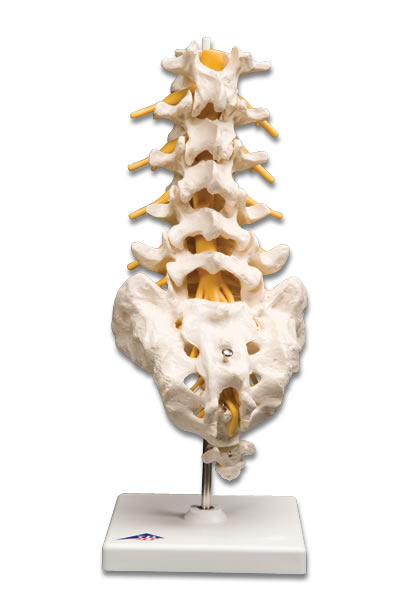 含5根帶椎間盤的腰椎、骶骨、尾骨、脊神經(jīng)和脊椎,置于基架上,靈活安裝。