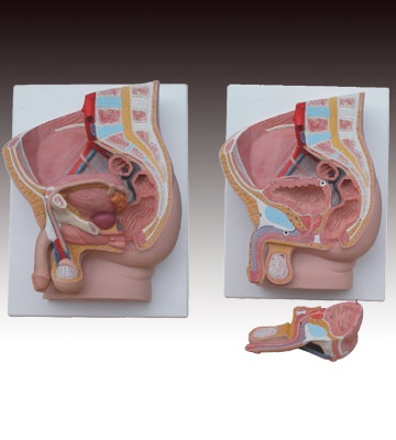 本模型作矢狀切面,顯示男性生殖器官和膀胱、直腸在骨盆中的正常位置。用PVC制成,包裝: 37x55x37CM, 4件/箱, 10KG