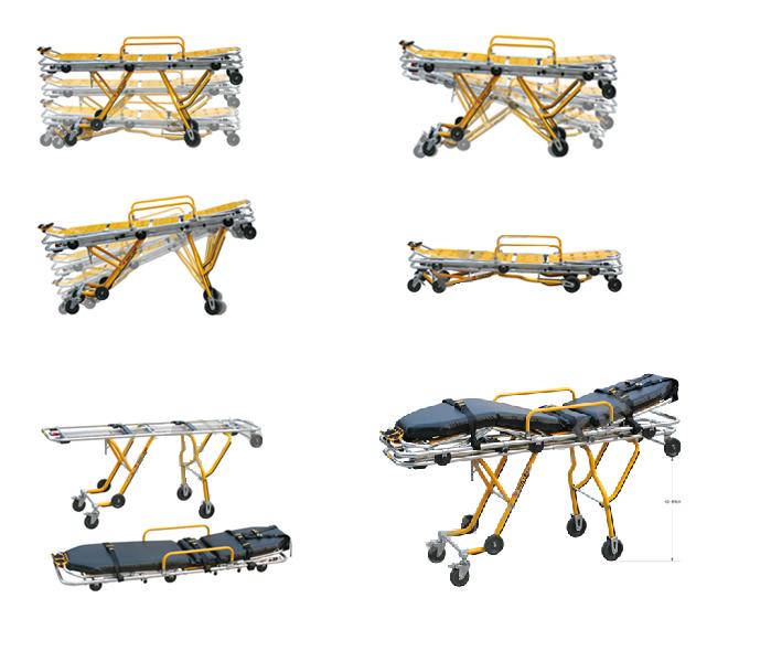 僅需一名救護(hù)人員可推上車,床面可單獨(dú)做擔(dān)架使用;