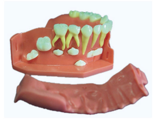功能特點(diǎn):可移去牙齦展示3-6歲兒童的牙列發(fā)育情況,牙為進(jìn)口樹脂,牙齦為進(jìn)口透明硅橡膠,座為進(jìn)口水晶膠,無頜架。