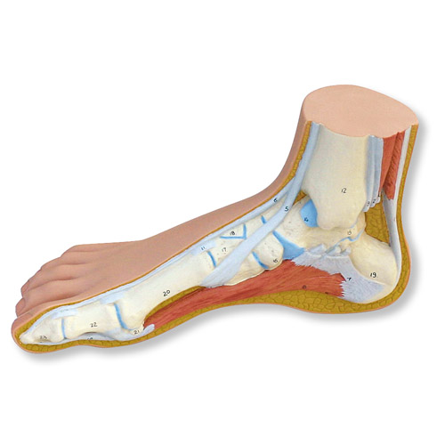 除了表層結(jié)構(gòu),還展示了足內(nèi)側(cè)的骨頭、肌肉和韌帶。