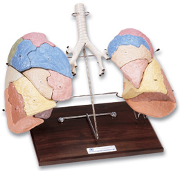 以天然標(biāo)本為原型,展示了支氣管、細(xì)支氣管和肺泡。18 個(gè)標(biāo)注的分區(qū),彈性連接,可供內(nèi)部結(jié)構(gòu)的觀察。置于基架上。