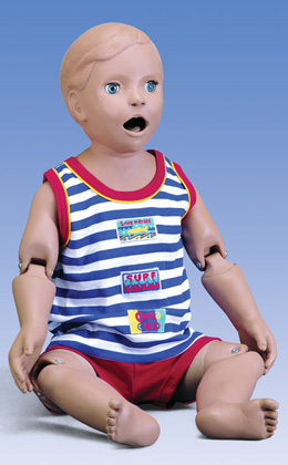 這款模型表現(xiàn)的是一個(gè)1歲的乳兒,四肢可旋轉(zhuǎn)(肘和膝蓋關(guān)節(jié)活動(dòng))。適于練習(xí)基本的和高級(jí)的小兒護(hù)理技巧: