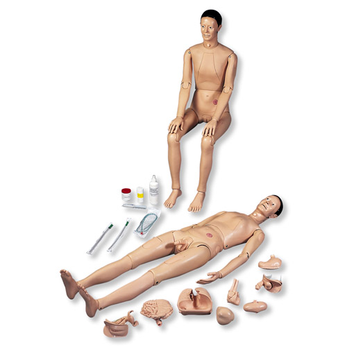 這款獨一無二的護理模型,是教學和練習必備之物。適用于: •個人衛(wèi)生和口腔清潔(可取出的假牙) •體位變換 •繃帶包扎(包括出血和不出血包扎) •沖洗法(眼、耳、鼻、胃、腸、膀胱) •注射(肌肉和皮下) •洗胃及插胃管供養(yǎng) •供氧、人工呼吸 •氣管切開護理(清洗及吸出) •插管導尿(男、女) •結腸造口術護理 •灌腸 這款教學上常用的病人護理模型,可提供大量的基本護理和治療護理培訓、練習可能性。頸、臂和腿的各關節(jié)靈活,可模仿人的各種姿勢。腰部靈活連接,所以模型可以彎腰。肺、心、胃、膀胱和腸均可拆卸。膀胱和腸防水,并通過容易分解的連接與可替換的外生殖器相連,便于插管導尿。特制的閥門,防止液體的異常外流,并模仿插導管和腸管時人體的天然阻抗。附一段截肢,以供演練包扎技術。另提供腸管、插管導管、十二指腸引流管、滑石粉、凡士林和潤滑劑。
