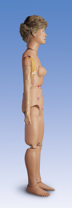 這款成年人模型用于基本的和高級(jí)的病人護(hù)理練習(xí),及生命救護(hù)和急救措施的訓(xùn)練。特點(diǎn):