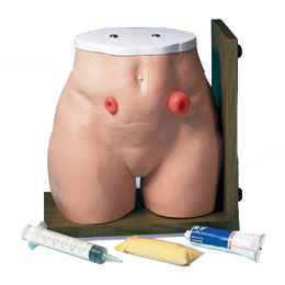 這款模型模擬了人的下體,表現(xiàn)了腹部結(jié)腸造瘺和回腸造瘺真實(shí)的功能和外觀�?烧故竞途毩�(xí)小孔擴(kuò)張,以及術(shù)后及永久性造瘺袋的置放。結(jié)腸瘺可清洗。注射器可用來抽取排除回腸造瘺模擬尿液(水)和結(jié)腸造瘺模擬糞便。提供模擬糞便和手提箱。