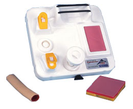 這款縫合訓(xùn)練器適于練習(xí)開放的手術(shù)和復(fù)雜的切開、縫合。單面皮膚墊和一段腹部的腸(可吻合)可以更換。