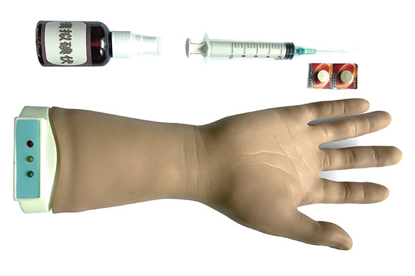 ■如果穿刺定位正確,與模型相連的控制盒上會相應(yīng)亮起綠燈, 如進針正確會亮黃燈,如碰到神經(jīng)則亮紅燈。其皮膚為天然乳膠制成,可更換。