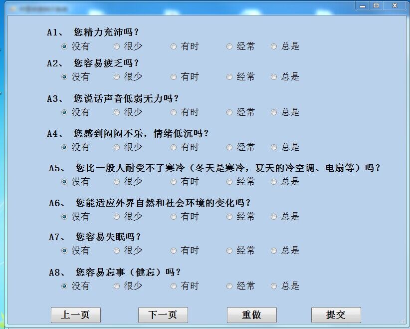 中醫(yī)體質(zhì)辨識系統(tǒng)-問卷測試界面