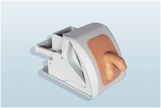 2 模型為便攜式外觀設(shè)計(jì),仿真模擬男性外陰,恥骨聯(lián)合處觸診骨性標(biāo)志明顯,包含完整的陰莖、陰囊、肛門、尿道、前列腺等解剖結(jié)構(gòu),尿道具有生理彎曲,帶來接近真實(shí)的手術(shù)操作體驗(yàn)。