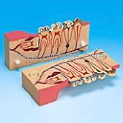 功能特點:該模型經(jīng)下頜前磨牙、磨牙冠狀剖面可分解成兩,顯示下頜第一、第二前磨牙和第一、第二、第三磨牙的構(gòu)造以及齲齒病變充填修補后的形態(tài)等結(jié)構(gòu),共有12個部位指示標(biāo)志。