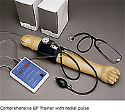 The S410 Blood Pressure Training System includes a full-size adult left arm that may also attach to any Gaumard adult manikin. This is a versatile training tool developed to assist health professionals teach the processes and skills required to perform blood pressure auscultation procedures. Full size left arm that may also attach to any Gaumard adult manikin. Programmable, palpable radial pulse when cuff pressure is less than the selected systolic blood pressure Korotkoff sounds K1 through K4 (K5 is silence) audible between systolic and diastolic pressures Korotkoff sounds are automatically silenced if auscultation gap is selected Korotkoff sounds are automatically adjusted depending upon selected heart rate and the rate of cuff deflation. Conventional stethoscope to auscultate Korotkoff sounds in the antecubital area. Conventional sphygmomanometer cuff with tubing assembly. Programmable Blood Pressure Auscultation Tutor featuring: –Adjustable systolic and diastolic pressures –Adjustable auscultation gap –Adjustable pulse rate –Display tracks cuff pressure –International power supply 100 to 240 VAC Optional speakers with volume control allow students to hear what the individual student hears while using the stethoscope. Carrying bag Instruction manual
